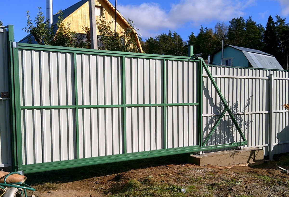 Откатные ворота из профнастила с автоматикой
